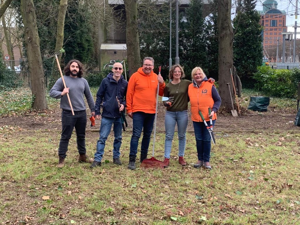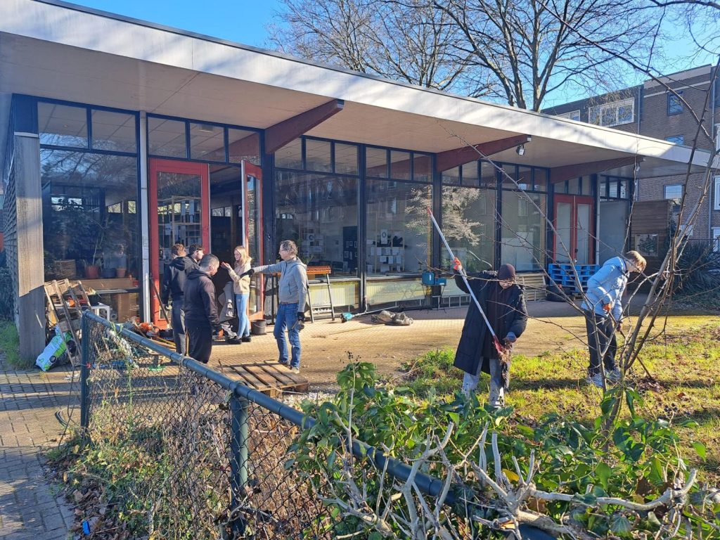 NLdoet is thé national volunteer day, organised by the Oranje Fonds. In ‘t Zand, we also worked hard on this day and spruced up our neighbourhood. On Friday morning, students at Koning Willem I College helped prune the garden of the OMNII community centre. On Friday afternoon, Arcadis employees helped refurbish two jeu-de-boules courts.