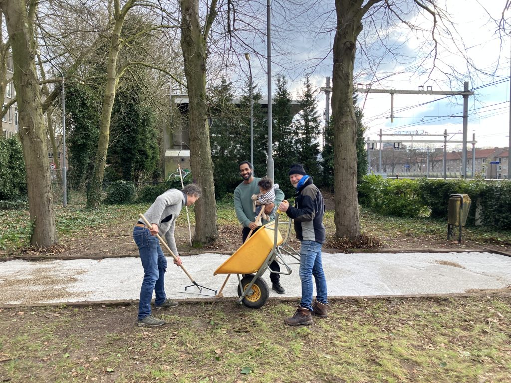 After lunch, there was a tour past all the projects that had been worked on that day, to see what had been achieved during NLdoet. In total, a dozen tree pits were refurbished, dozens of square metres of greenery were maintained, and many kilos of green waste and 1m3 of gravel were processed.
