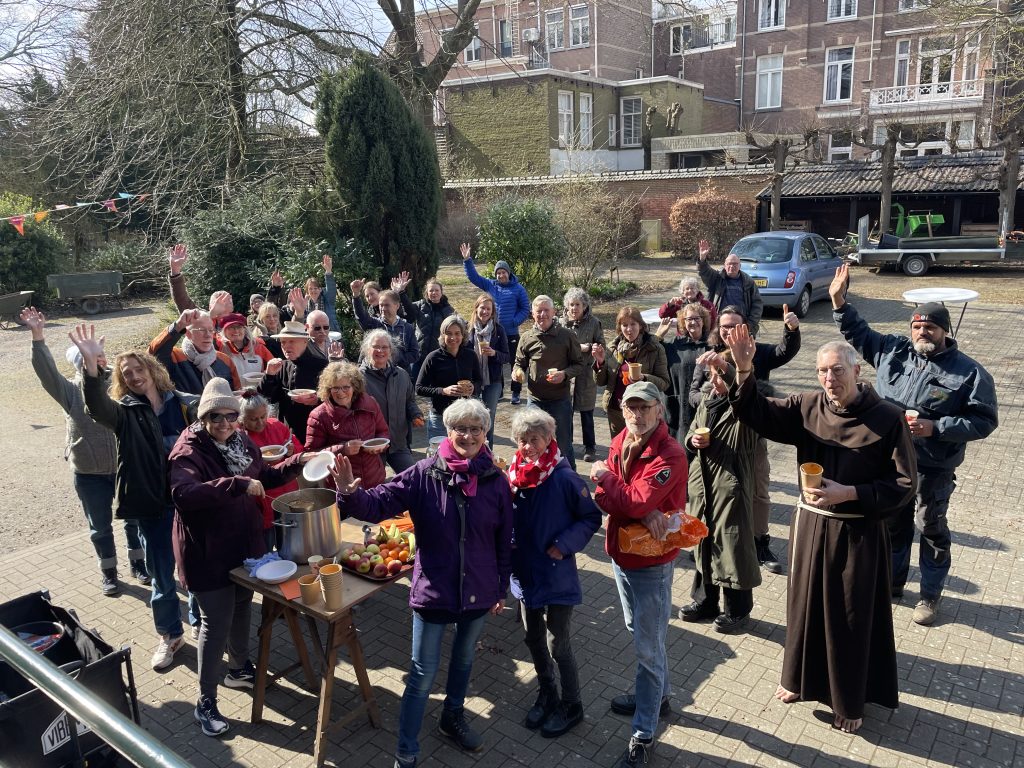 After fixing up our neighbourhood, the residents and volunteers had lunch together in the garden of city monastery San Damiano. Volunteers from ‘t Zand and from outside of the neighbourhood also worked in this garden all morning.