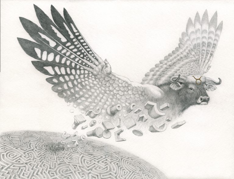 The Great Escape | 2022 50cm x 65cm | Potlood en bladgoud op papier