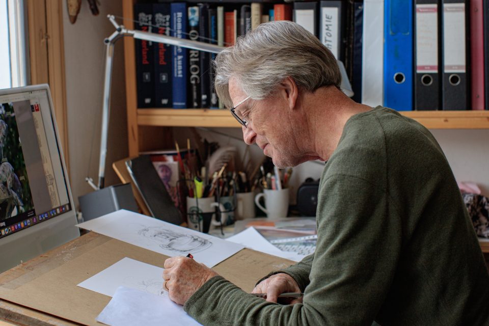 John Rabou (1955) woont in 2025 maar liefst 50 jaar in ’t Zand. Hij heeft zich gespecialiseerd in geschiedenis- en erfgoedillustraties waarbij hij een zo groot mogelijke historische nauwkeurigheid nastreeft. John illustreert voor uitgeverijen, erfgoedinstellingen, archeologische diensten, musea en themaparken, zowel nationaal als internationaal. Vanaf 2014 initieert en produceert John, in samenwerking met diverse schrijvers, eigen boekprojecten.