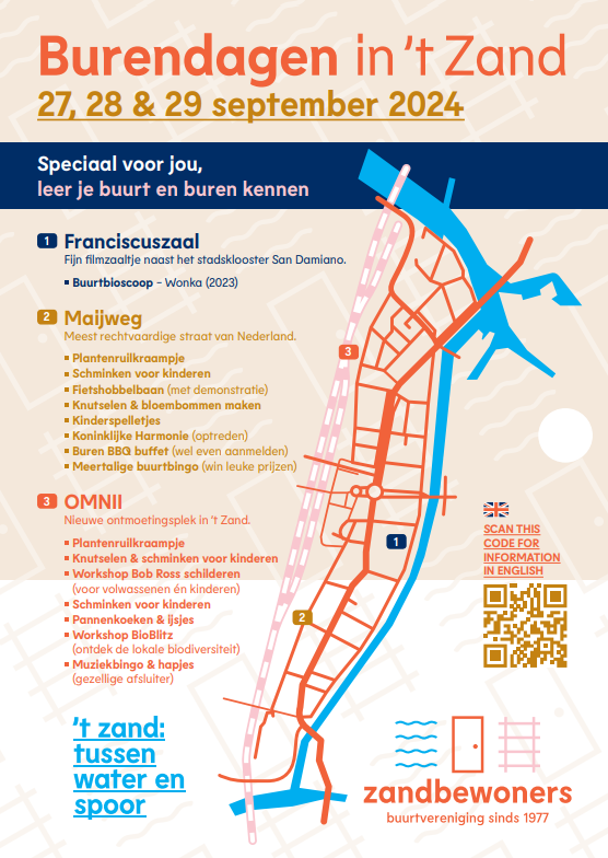 Tijdens de Burendagen werden activiteiten georganiseerd waar de bewoners van ’t Zand aan mee konden doen. Zo was er popcorn in de buurtbioscoop met de film Wonka op vrijdag en konden bezoekers fietsen op een hobbelbaan op zaterdag. Hiernaast werden nog vele andere activiteiten georganiseerd: