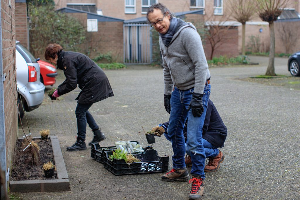 Op zaterdag 21 december hebben we samen met bewoners en medewerkers van Zayaz van deze flat ruim 200 nieuwe plantjes in de tuintjes gezet. Flatbewoners onderhouden zelf het groen rondom de flat met hulp van de buurtvereniging.